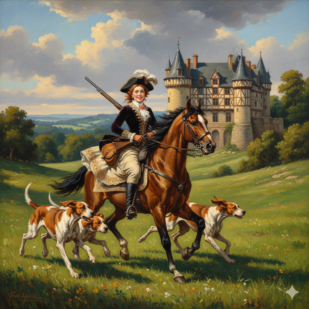 The client entered a past life, taking on the persona of a woman named Julie, finding herself in a classical, old-world setting, seemingly in France. Her life played out amidst the luxury of a vast, wooden-built château—a style more akin to an immense country manor than a stone fortress.